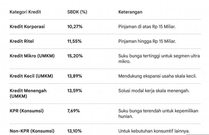 Berikut adalah rincian bunga dasar berdasarkan kategori kredit: